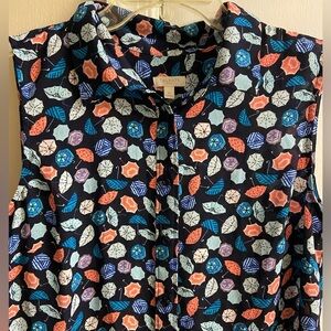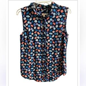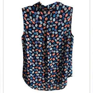 Talbots Blouse Sleeveless Button Front Medium Umbrella Print