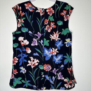 Talbots Blouse Sleeveless Size 12 Navy Blue Floral Button Back
