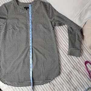 Talbots Blouse Small Black White Houndstooth Long Sleeve Work Top Career Wear