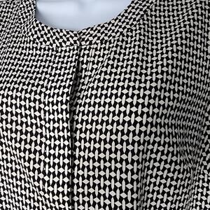 Classic and polished, this Talbots women’s blouse in size Small features a timeless black-and-white houndstooth print. Designed with a rounded neckline, hidden front placket, and a curved hem for a flattering silhouette. Lightweight polyester fabric makes it a comfortable and versatile piece for office, career, or casual wear.