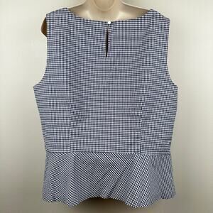 Talbots Blouse Top Sleeveless Gingham Check Plaid Peplum Size 18 Nautical