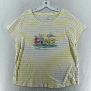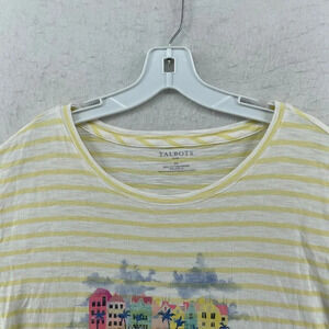 Talbots Blouse Top Women 2X Yellow White Stripe Round Neck Pullover Short Sleeve