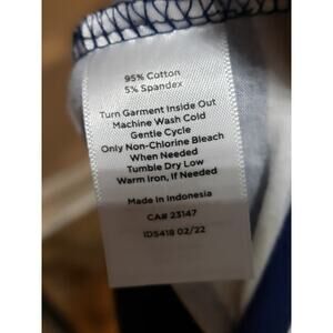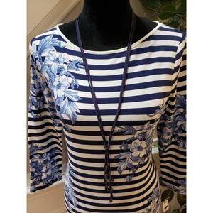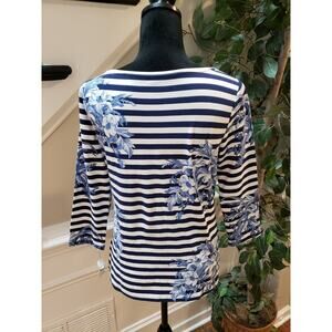 Talbots Blouse Top Womens Small White Blue Striped Floral Long Sleeve Round Neck