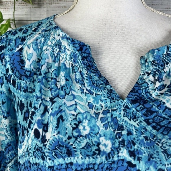 Talbots Blouse Top size Extra Small Blue Paisley Smocking Prairie Boho Peasant