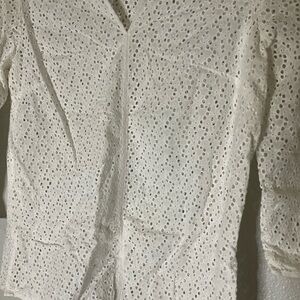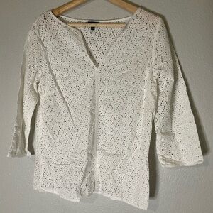 Talbots Blouse White Eyelet Women's Small 3/4 Sleeve