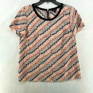 Talbots Blouse Women's 8 Orange Black Round Neck Geometric Back Zip Short Sleeve