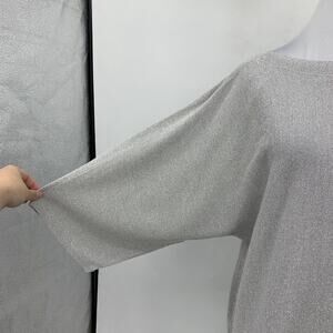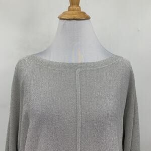 Talbots Blouse Womens LP Large Petite Silver Metallic Dolman Sleeve Split Seam
