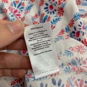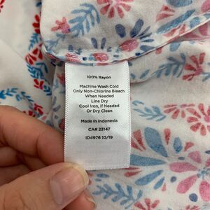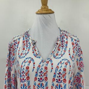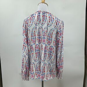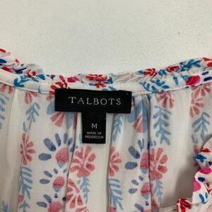 Talbots Blouse Womens M Medium White Blue Shirred Notch Floral Peasant Paisley