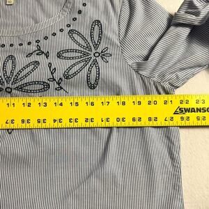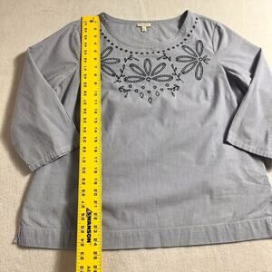 Talbots Blouse Womens Petite M Embroidered White Blue Striped 3/4 Sleeve