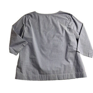 Talbots Blouse Womens Petite M Embroidered White Blue Striped 3/4 Sleeve