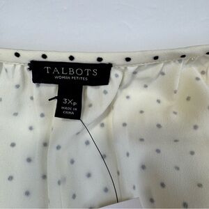 Talbots Blouse Women's Size 3 XP Cream Polyester Polka Dot Top Relax Fit Casual