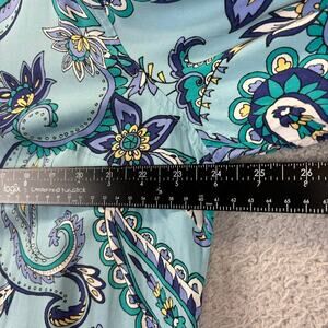 Talbots Blouse XL Blue Paisley Boho Preppy Floral Whimsical Colorful Roll Tab