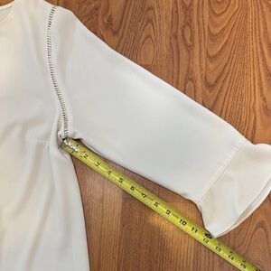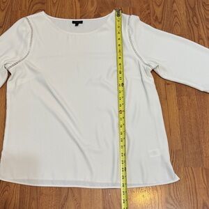 Chic cream blouse by Talbots. Features ruffle sleeves and elegant detailing. Perfect for versatile styling. Side zipper
