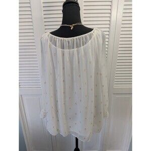 Talbots Blouse/Cami Women's XL Flounce Sleeve Ivory Gold Metallic Clip Dot New