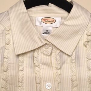 Ruffle front Talbots Blouse . Yellow and cream stripe. NWOT. Never worn.