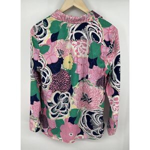 Talbots Blouse Size Large Pink Blue Tropical Floral Popover Collared Resort