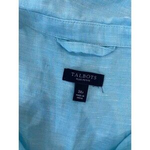 Talbots Blue 100% Linen Plus Petite 3XP Lightweight Summer Top Tie Country