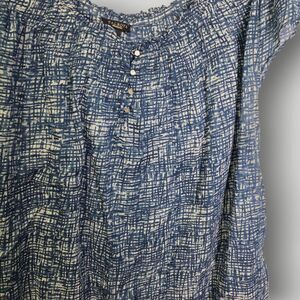 Talbots Blue Abstract Print Cotton Blouse Size Large