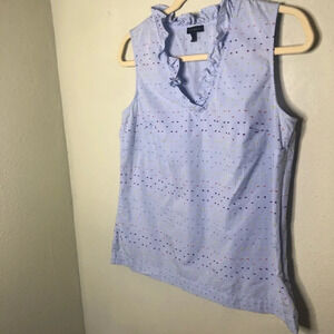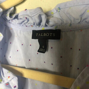 Talbots Blue Blouse with Textured Rainbow Dots Ruffle Collar Size Small