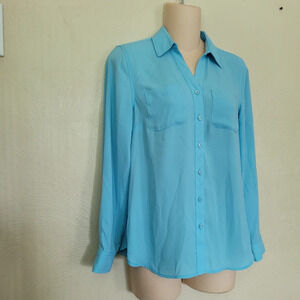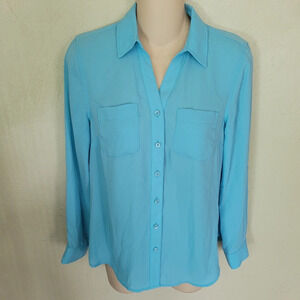 Talbots Blue Button Down Collar Blouse Size Women's Small Petite