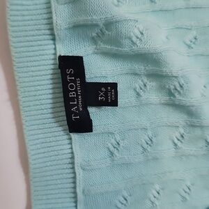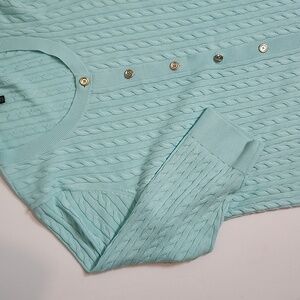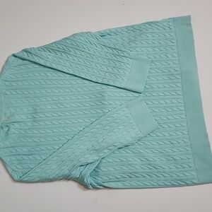 Embrace timeless elegance with this Talbots cardigan, featuring a classic cable knit design in a soothing blue hue. Its relaxed fit and medium-weight material make it perfect for layering during cooler days. The crew neckline and long sleeves add to its versatile charm.