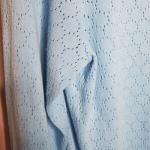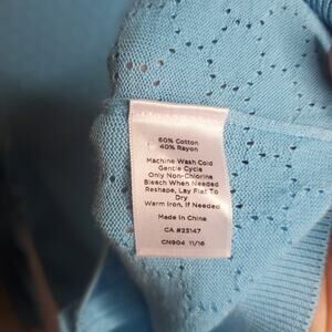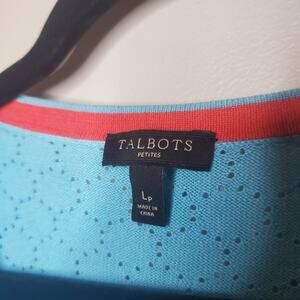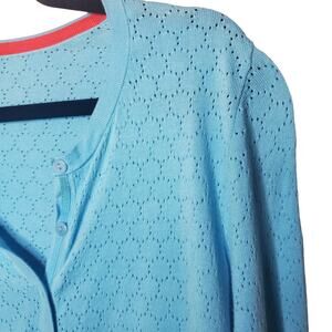 Talbots Blue Cardigan Petite Large Full Button Up Pointelle Cotton Blend