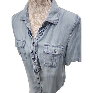 Talbots Blue Chambray 100% Lyocell Button Down Short Sleeve Shirt Medium