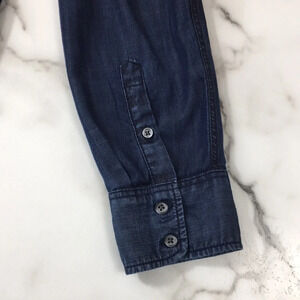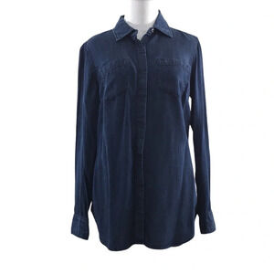 Talbots Blue Chambray Button Front Shirt Womens Small Long Sleeve