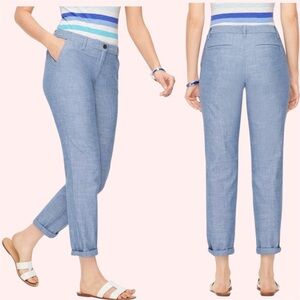 Talbots Blue Chambray Relaxed Chino Pants Ankle Length Stretch Cotton Size 2