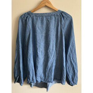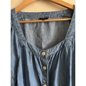 Talbots Blue Chambray Square Neck Button Up Top Blouse Shirt 2X Peasant Boho