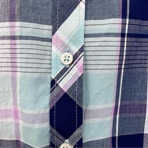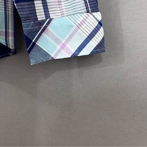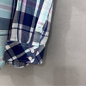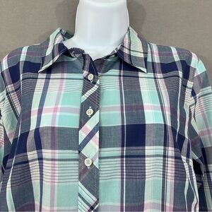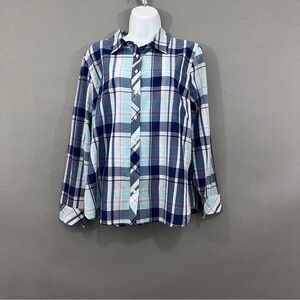 Talbots Blue Check Button Front Long Sleeve Shirt
