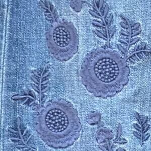 Talbots Blue Denim Mini Skirt with Embroidered Floral Design