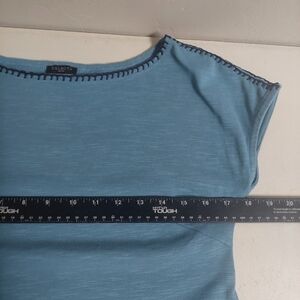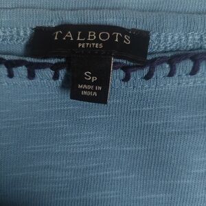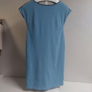 Talbots Blue Dress Black Trim Knit Scoop Neck Size SP Short Sleeve Pullover