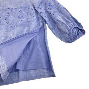 Talbots Blue Eyelet Embroidered Blouse Balloon Sleeves