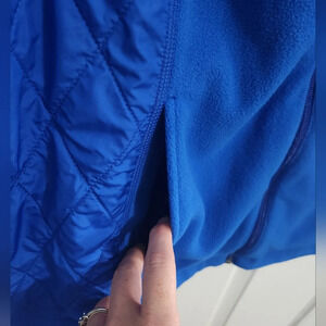 Elevate your winter wardrobe with this beautiful blue fleece jacket from Talbots. The jacket features a full zip closure, long sleeves, and a short length that makes it perfect for both travel and casual occasions. The quilted accents and colorful theme add a touch of outdoor adventure to your classic style.