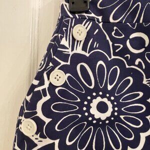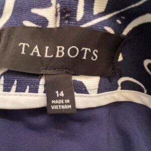 Talbots Blue Floral Canvas A-Line Skirt Lined Knee Length size 14
