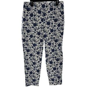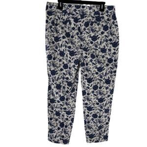 Talbots Blue Floral Chatham Ankle White Cotton Pants