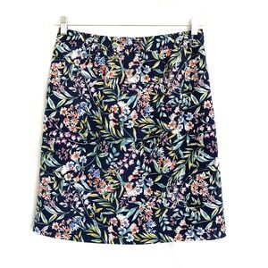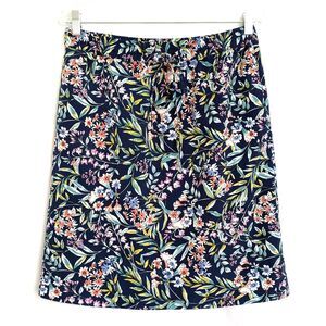 Talbots Blue Floral Skirt Size 8 Pull On Stretch Waistband Ties Pockets Lined