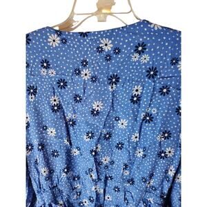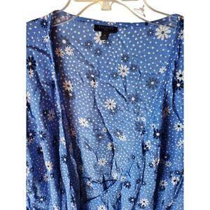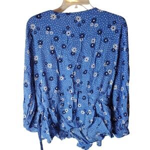 Blue polka dot floral wrap top. Lightweight.