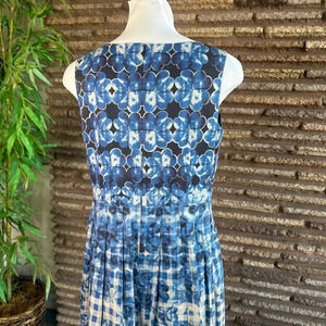 Talbots Blue Floral and Checked Fit and Flare Sleeveless Dress Size 12 Petite