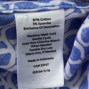 Talbots Blue White Print Button Up Long Sleeve Shirt. Women’s size 8.