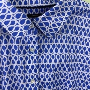 Talbots Blue Geometric Print Long Sleeve Button Up Shirt