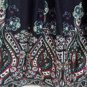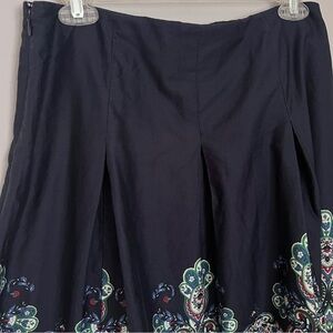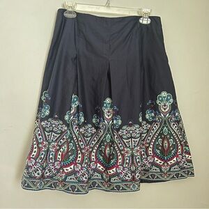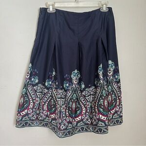 Talbots Blue & Green Paisley A-Line Knee-Length Skirt w/Pleated Embellishments