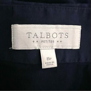 This knee-length A-line skirt from Talbots features a stunning blue hue, perfect for casual or resort wear. The skirt is beautifully pleated and embellished with intricate designs, adding a touch of elegance to its classic silhouette. Its versatile style makes it an ideal choice for a relaxed yet chic look.