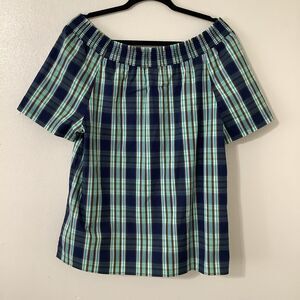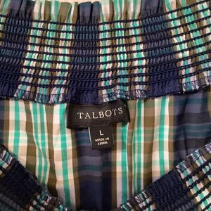 Talbots Blue Green Plaid Country Preppy Lightweight Casual Fall Autumn Blouse L
