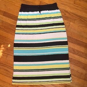 Super cute, comfy Talbots blue green white striped maxi shirt in size L 57% rayon, 38% cotton, 5% spandex