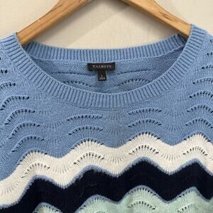 Talbots Blue Knit Chevron Stripe Pullover Fair Isle Sweater L Large