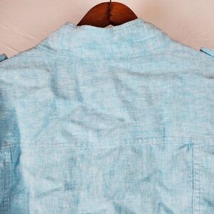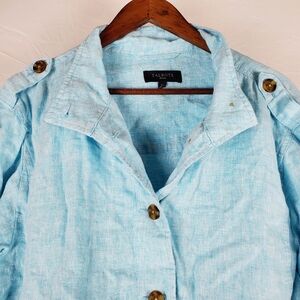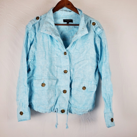 Talbots blue linen jacket. 100% linen. Button front. Adjustable drawstring hem. Great condition. Size large petite.