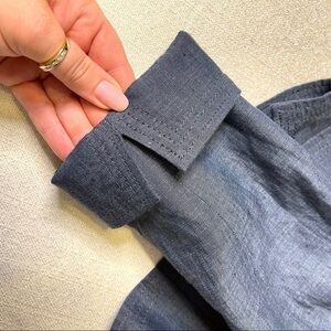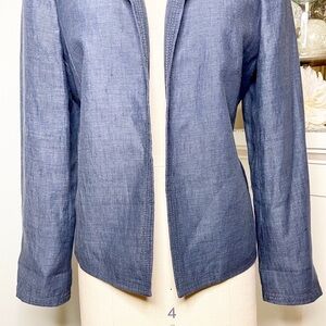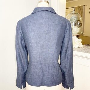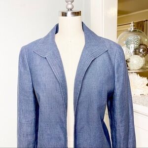 Talbots Blue Linen Blazer Jacket Career Office Professional Spring Summer Style Chambray Open Front Classy Dressy