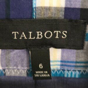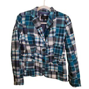 Talbots Blue Madras Plaid Cotton Blend Blazer Preppy Size 6